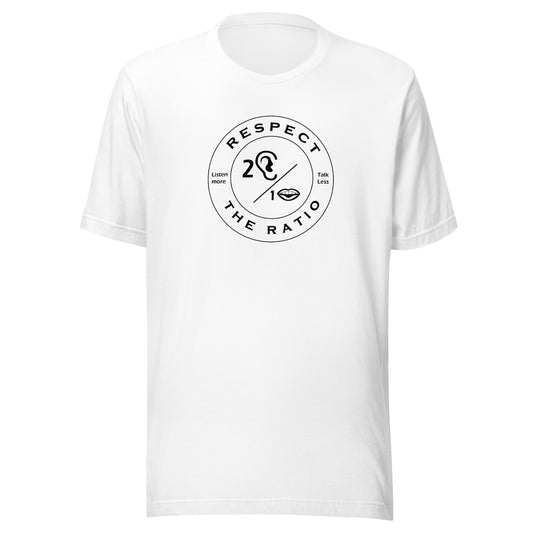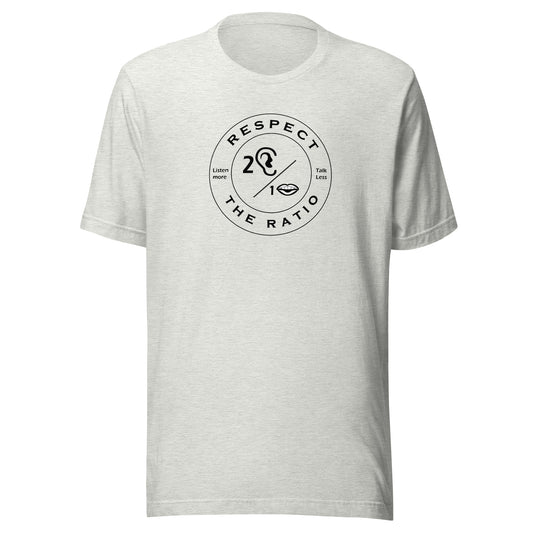 Respect the Ratio honors our design by nature: 2 ears/1 mouth. The message prioritizes listening to cultivate connection in today's world of polarization, narcissism, and isolation. 10% of proceeds will be given to The Summit Counseling Center based in Johns Creek, Georgia.